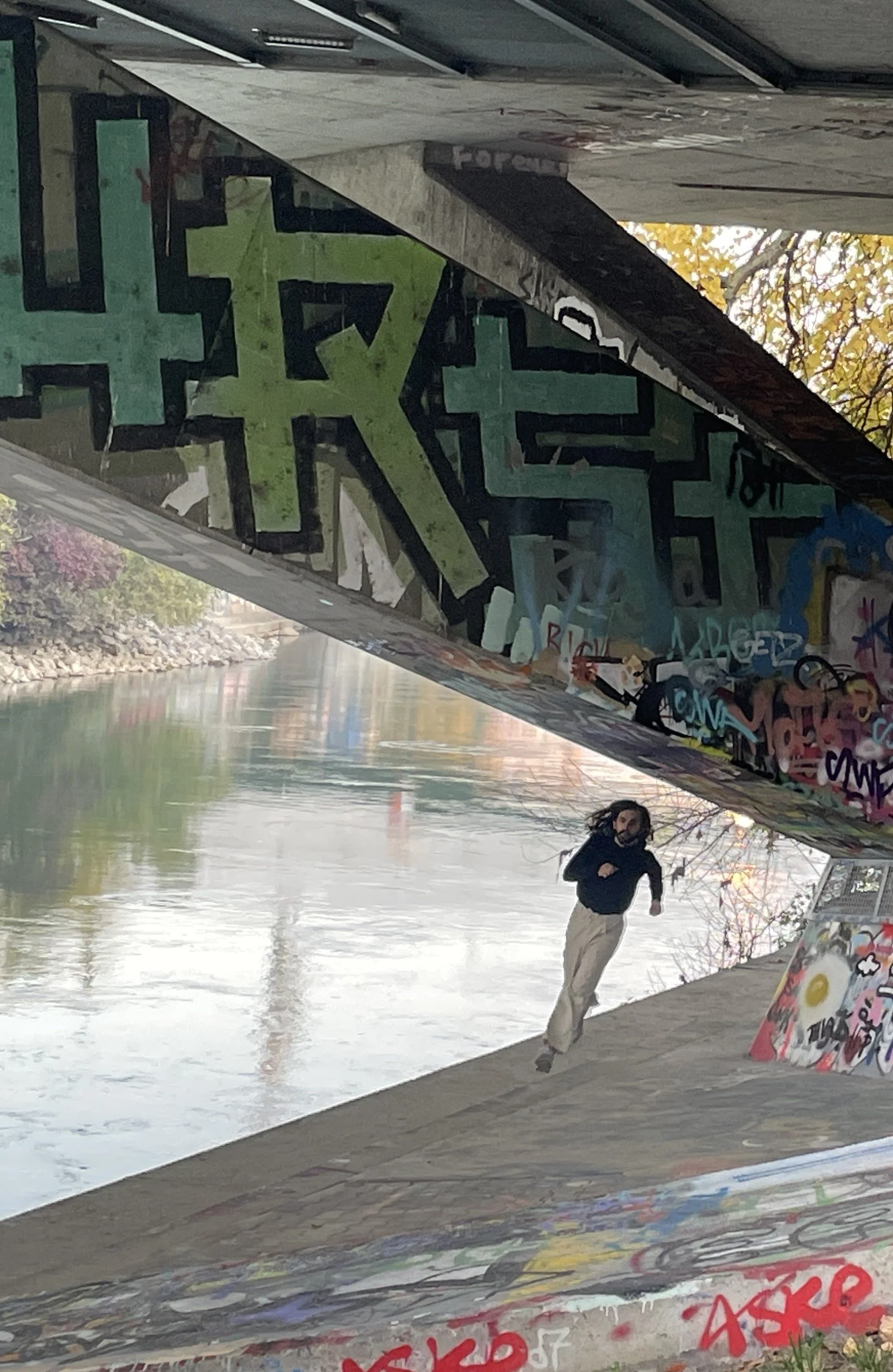 Alireza Khosroabadi is an Iranian theater-maker, interdisciplinary artist, and performer based in Vienna. His work explores the liminal spaces between performance and theatre through movement, choreographic practice, and embodied language. Originally from Iran, he has presented his work internationally, with exhibitions in Germany, Italy, and France, and performances in Vienna, where he is currently based.